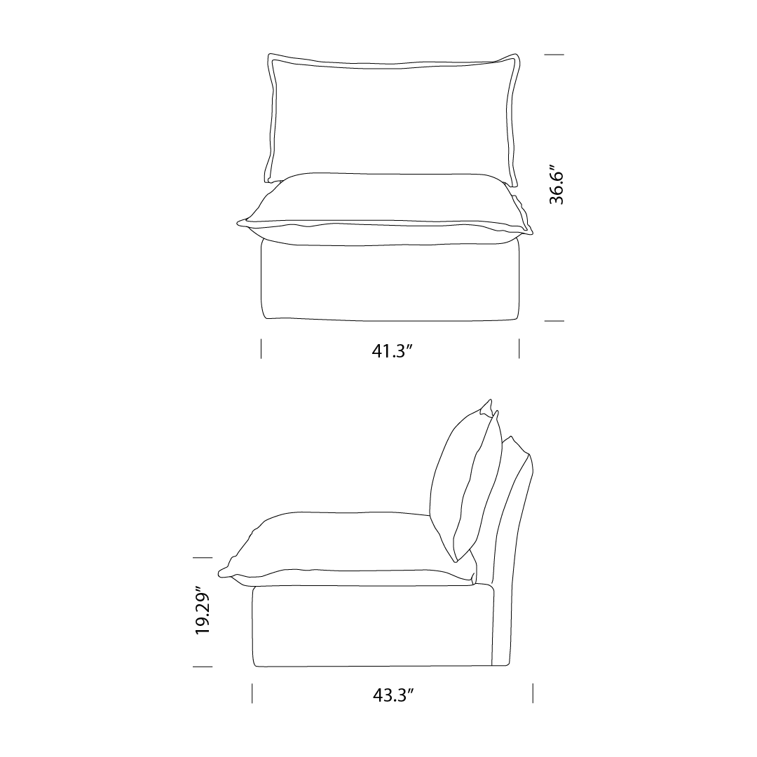Armless Module: 41.3 W x 43.3 D x  36.6 H inches